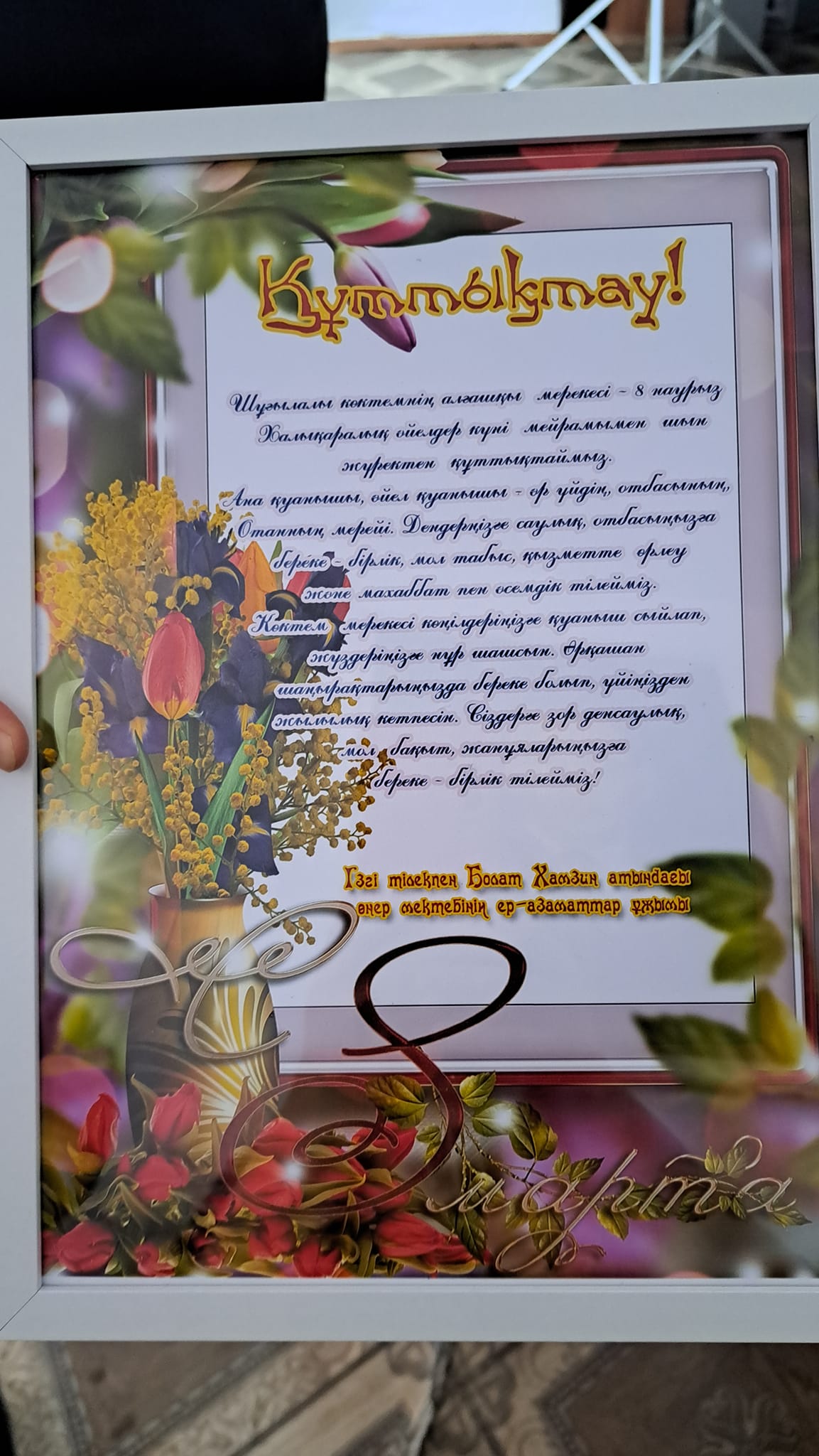 8 наурыз мерекесіне орай мектебіміздің ер азаматтарының ұйымдастыруымен "Ана- тіршіліктің тірегі" атты іс-шара өтті.